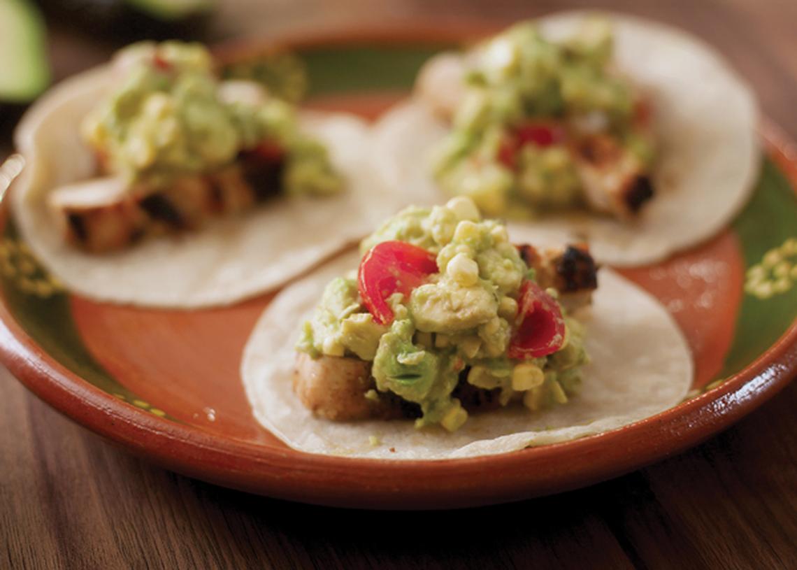 Lime-Rubbed Chicken Avocado Tacos with Corn Guacamole