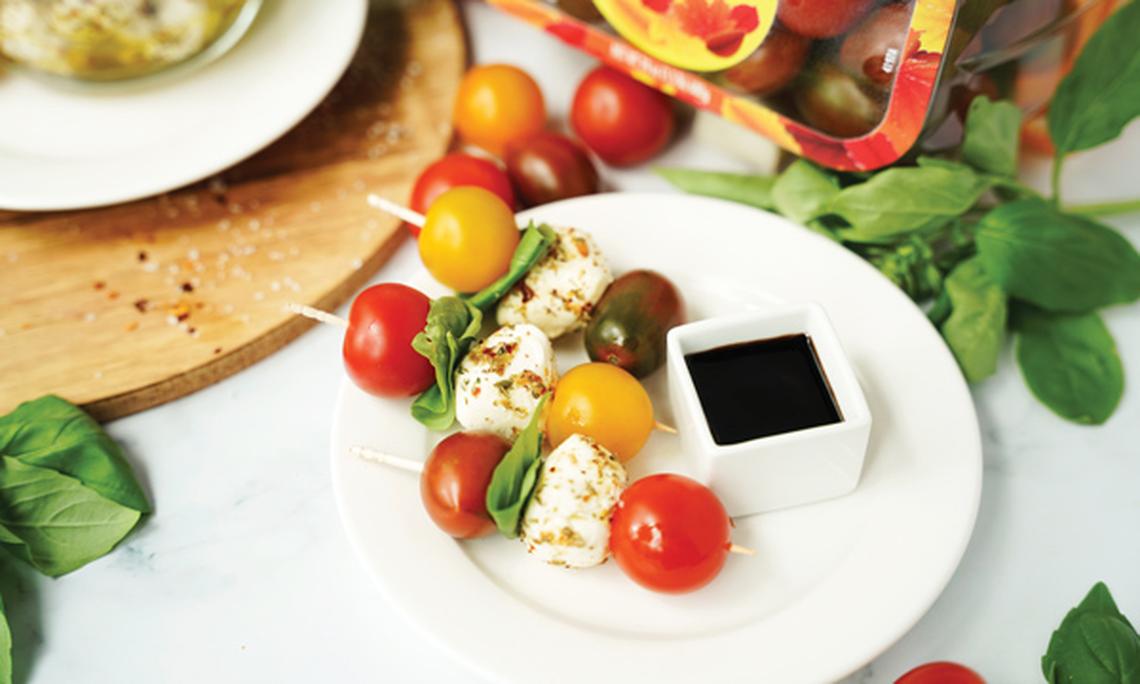 That commitment and the belief that “the more you put into something, the more you get out” shows up in flavorful recipes like these Caprese Skewers. Coated in a flavorful, fresh balsamic glaze, these light, colorful snacks make everything from after-school bites to weekend entertaining more fun.
