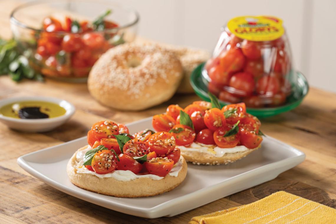 Or if you prefer savory, hearty snacks, these Bruschetta Bagels are packed with flavor. Homemade bagels are topped with juicy Glorys cherry tomatoes – perfect for grilling, sauteing, roasting, baking or simply snacking – creamy goat cheese and a splash of balsamic to create a bite that feels indulgent but is packed with fresh ingredients.