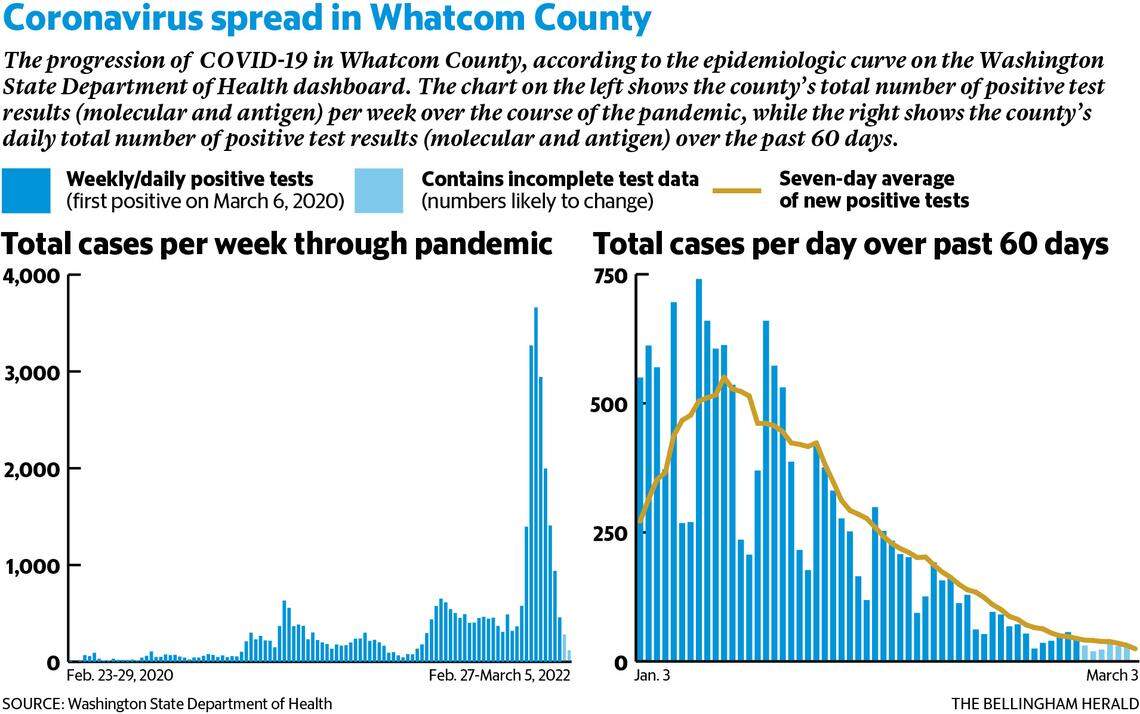 The death reported Friday was for a person who first tested positive for COVID on Jan. 9, The Bellingham Herald’s analysis of state epidemiological data showed. So far, Whatcom County has had a pandemic-high 37 deaths epidemiologically linked to January and another seven in February.